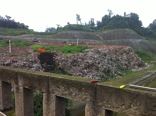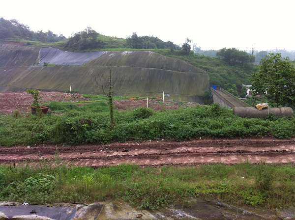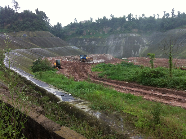 ??1、站在入口拍攝。左側(cè)推土機(jī)處為今年以來(lái)堆放的垃圾。右側(cè)為去年堆放的垃圾,已經(jīng)覆土。??
