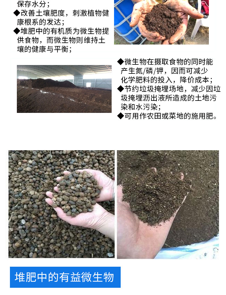 該產(chǎn)品中的微生物在堆肥過程中能夠產(chǎn)生消化酶來分解堆肥中的有機(jī)質(zhì)和纖維素類碳水化合物。